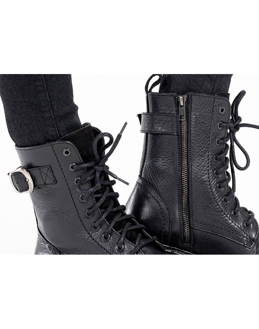 為追求風格與機能兼顧的女性騎士打造的一雙高跟機車靴。採用優質牛皮與 XTM® Fiber 膜層,搭配三點保護 (腳踝、後跟、前足)、檔位加強設計,以及防水鞋舌與防滑吸震鞋底,讓你在騎乘時既安全又保持優雅造型。