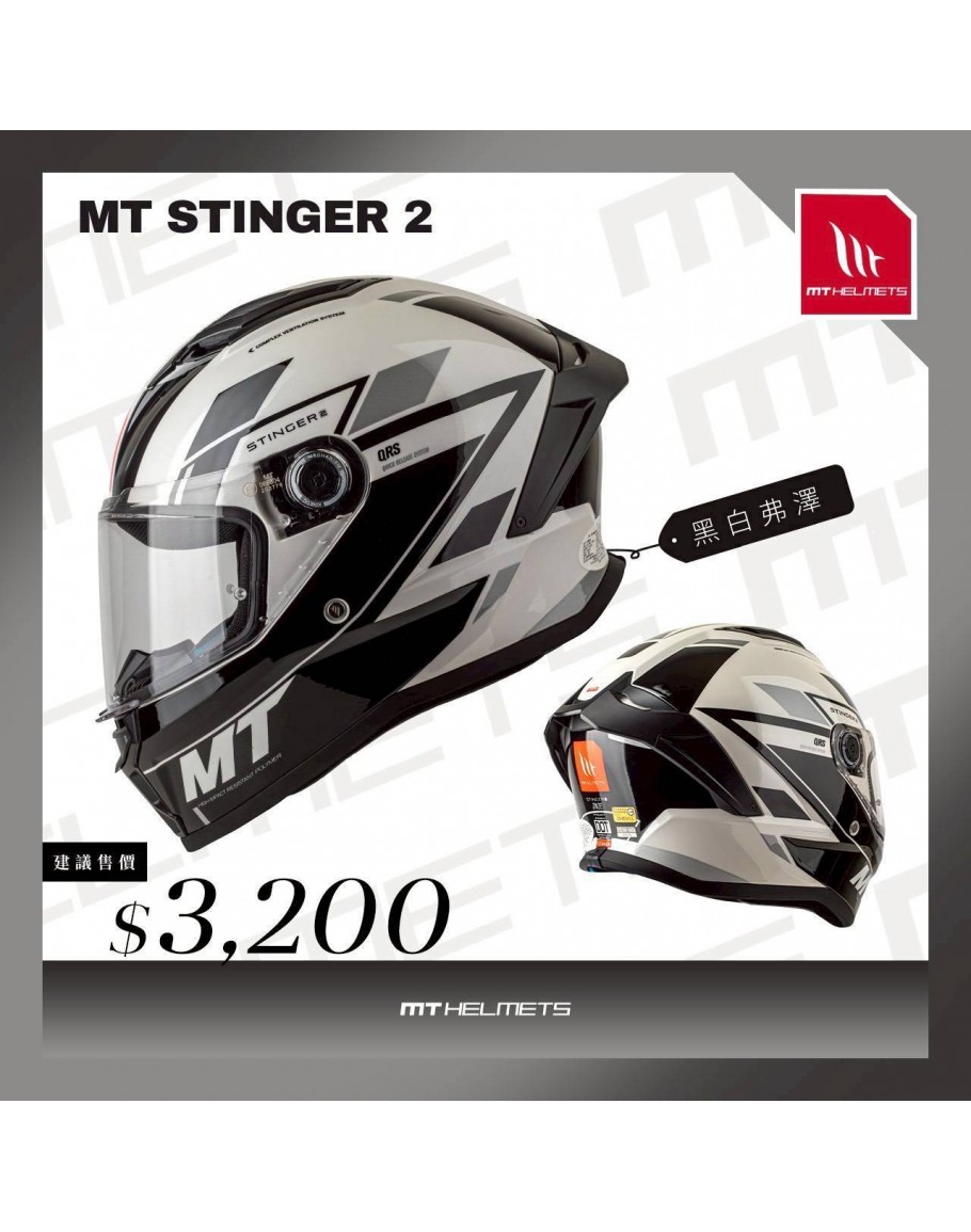 MT_STINGER2 黑白弗澤 全罩安全帽