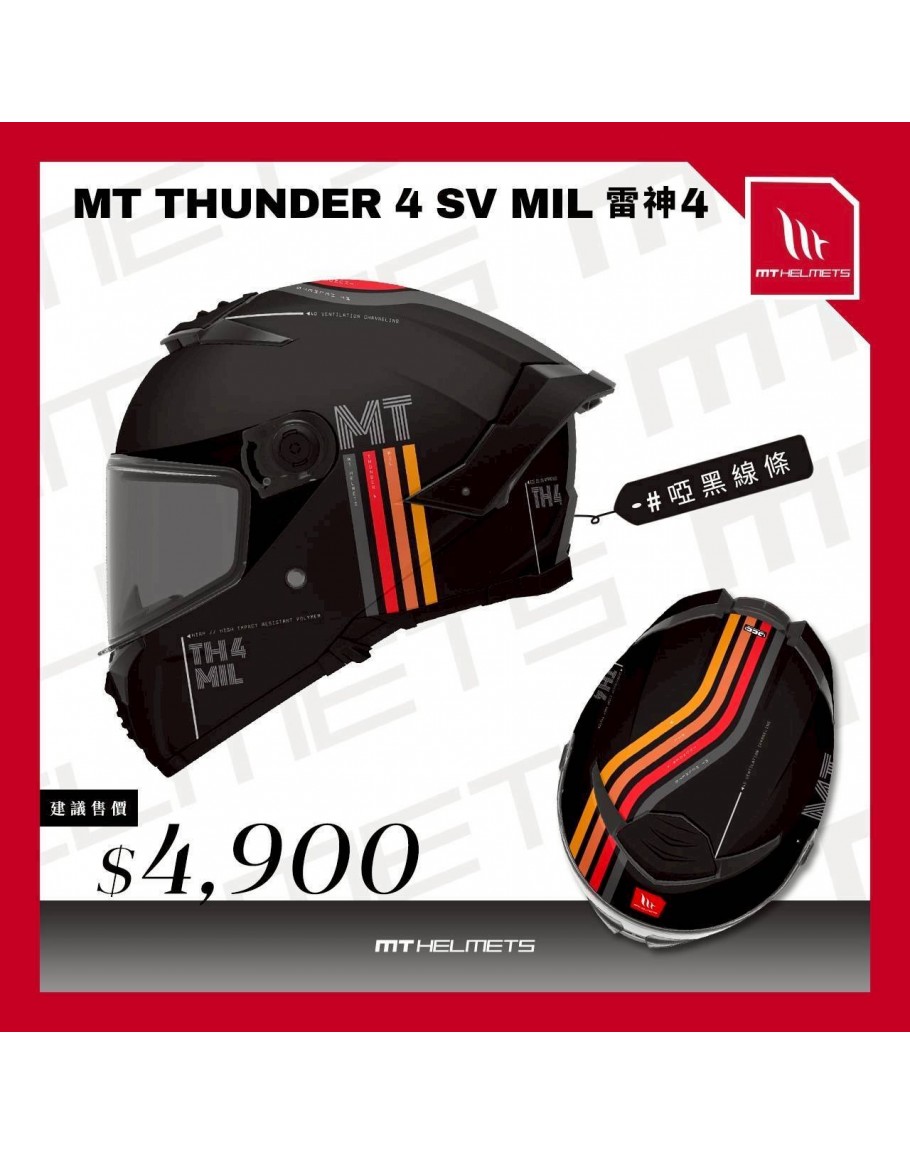 MT_THUNDER 4 SV MIL啞黑線條 全罩安全帽