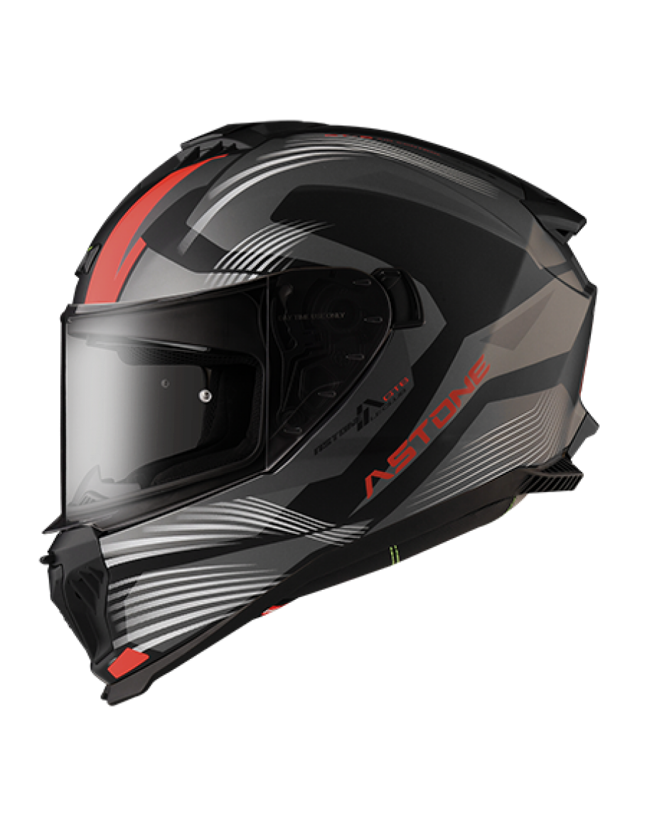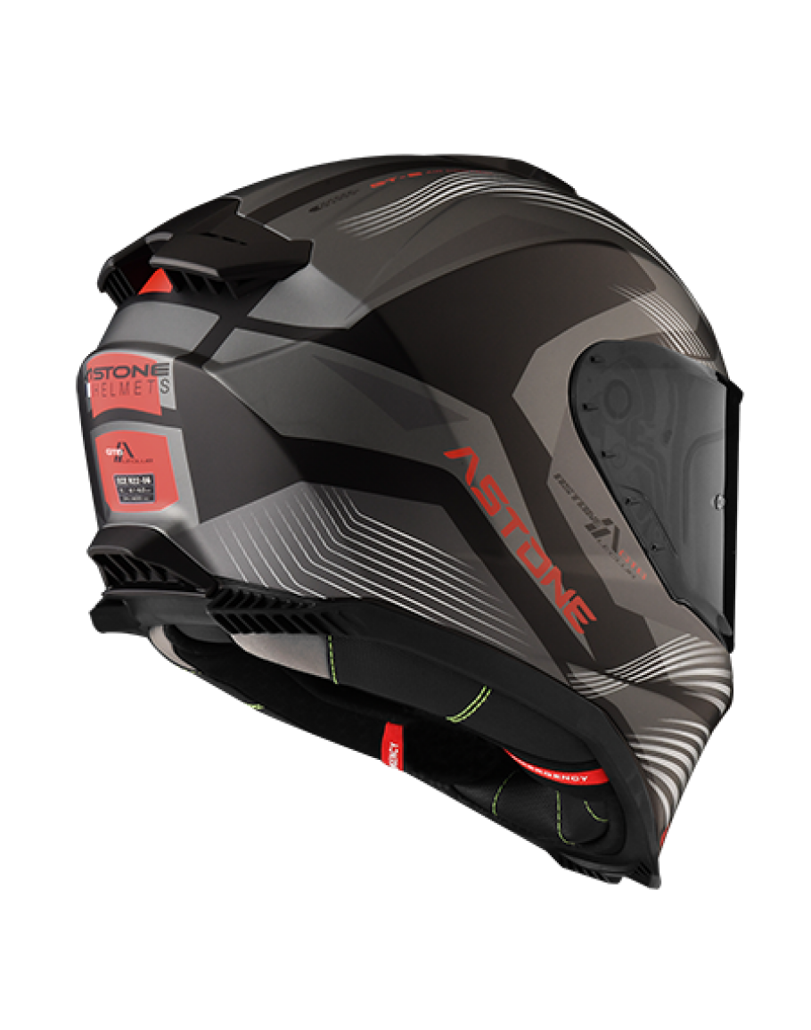 ASTONE GT6 全罩安全帽採用多密度 EPS 吸能內襯與雙料射出密封系統,強化安全防護。搭配 6 道通風氣孔與高階浮動系統,降低風切噪音並維持舒適騎乘感。內藏式太陽鏡片、可加裝 PinLock 防霧片、眼鏡溝設計與預留藍牙耳機孔位,適合長途與都會騎士。金屬排扣、反光材料、鏡片鎖設計,夜間與高速騎乘亦具安心保障。符合 ECE22.06 認證標準,安全可靠。