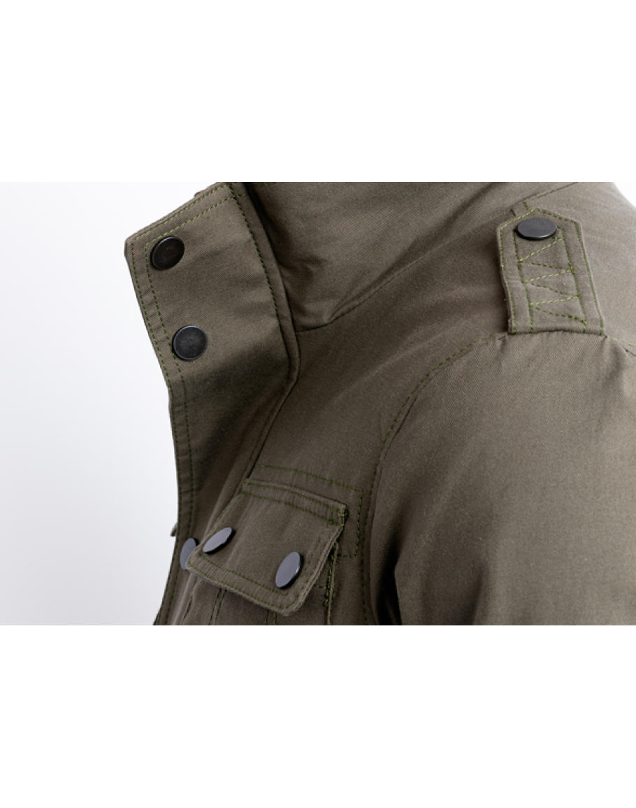 ◆通過 AAA 級 CE 認證,結合高密度棉斜紋布 + 蜂蠟塗層外層,提供優異防風、防潑水性能與耐磨防護