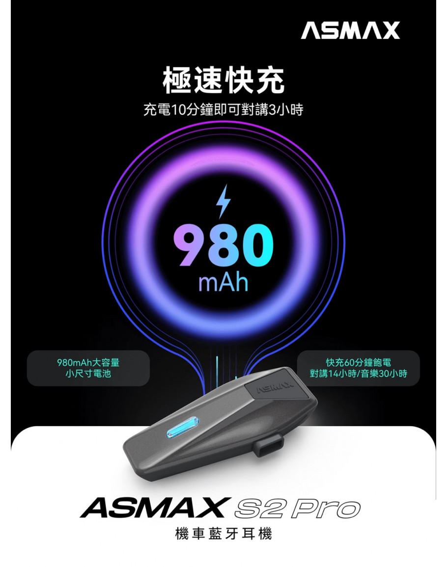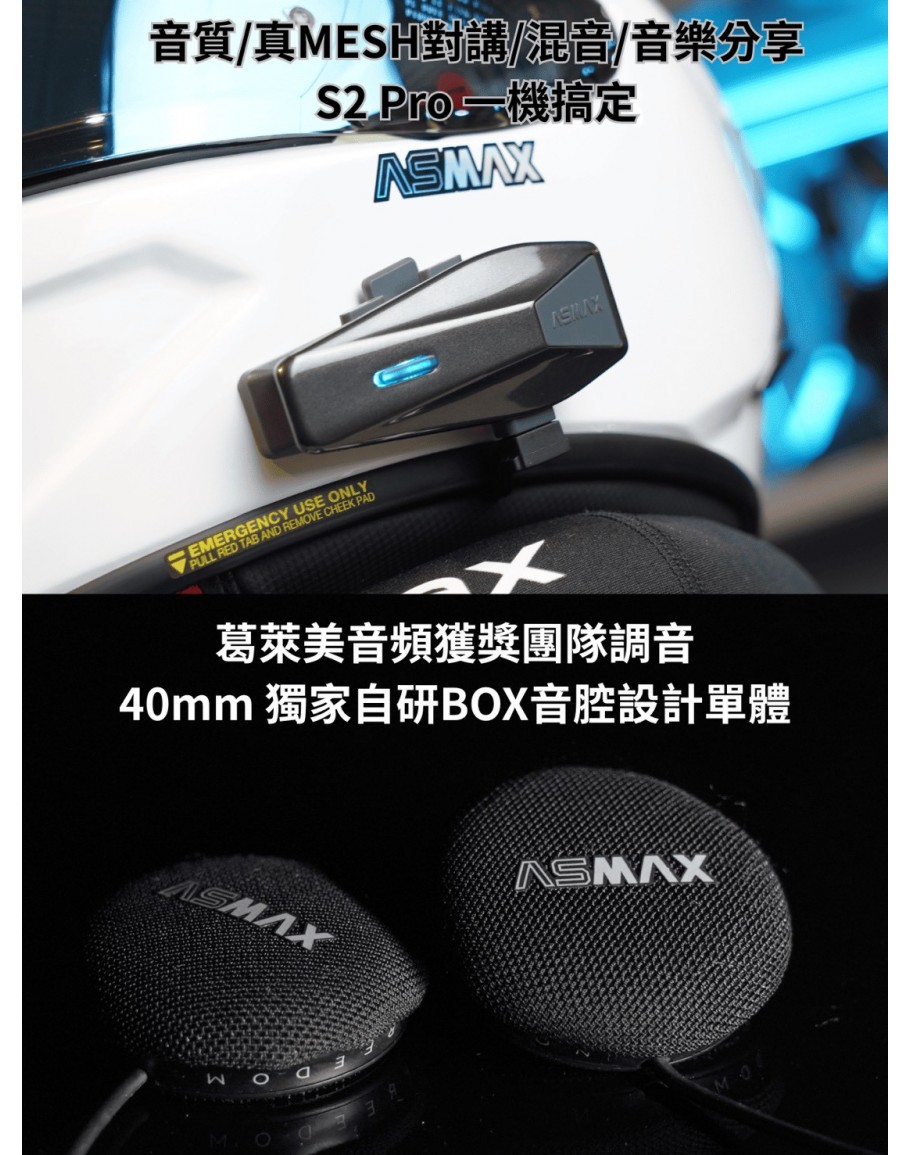 【ASMAX S2 PRO 安全帽藍牙耳機】真 MESH 對講・台灣限定 BOX 音腔・IPX7 防水