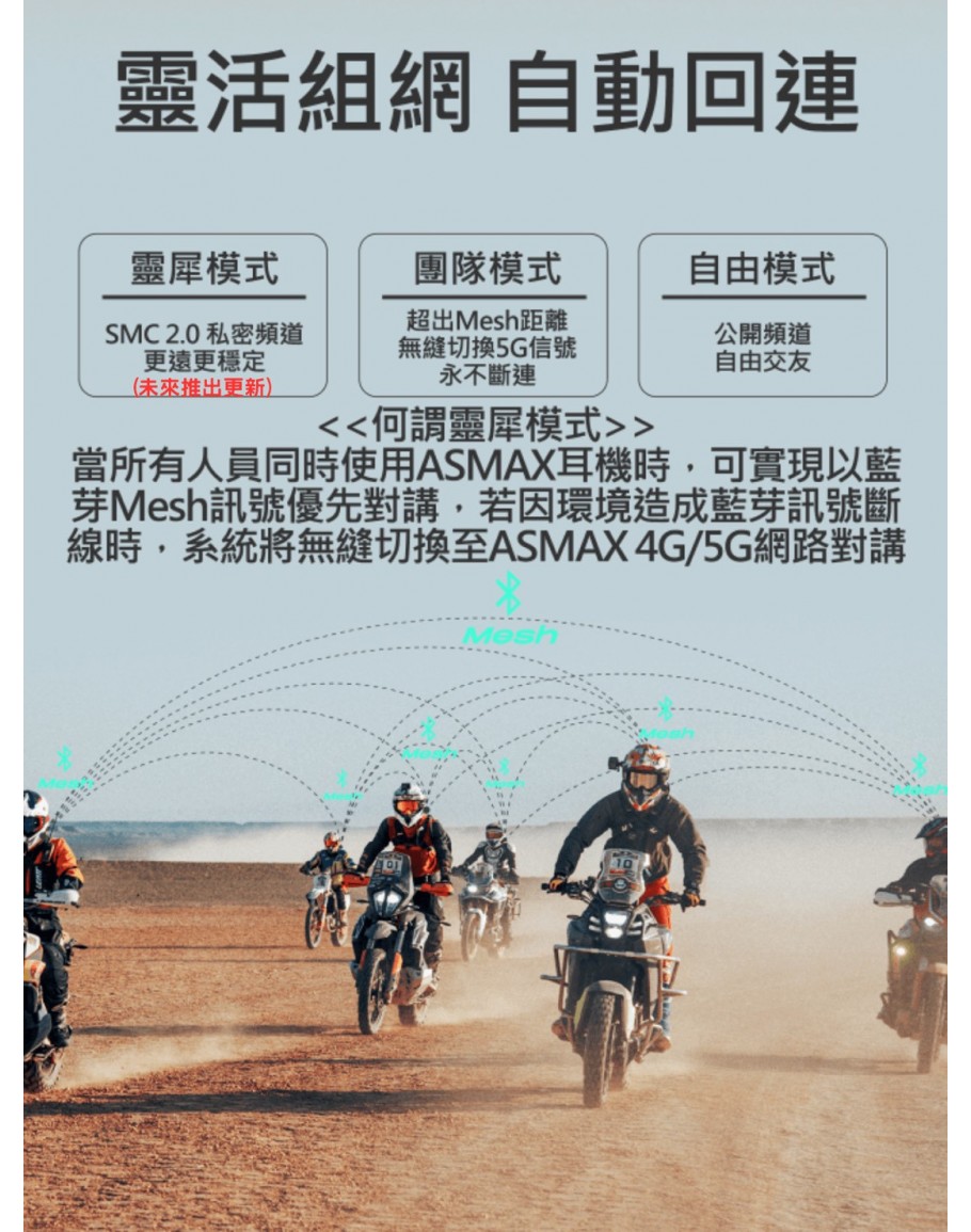 台灣市面上具備「真 MESH」的品牌僅 ASMAX/SENA/Cardo